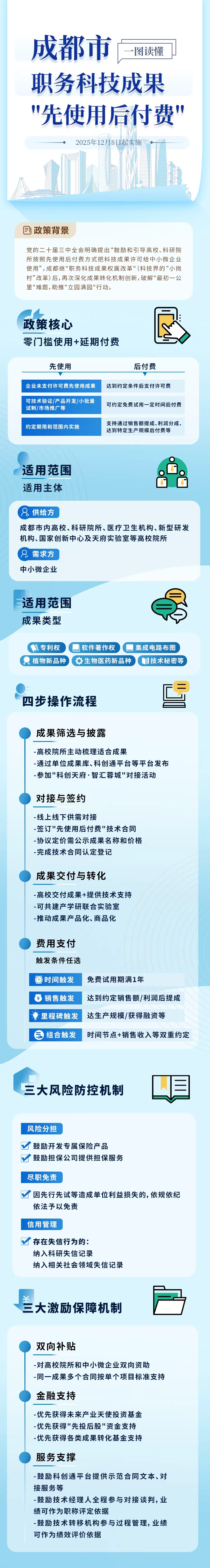 一图读懂《成都市职务科技成果先使用后付费操作指引(试行)》