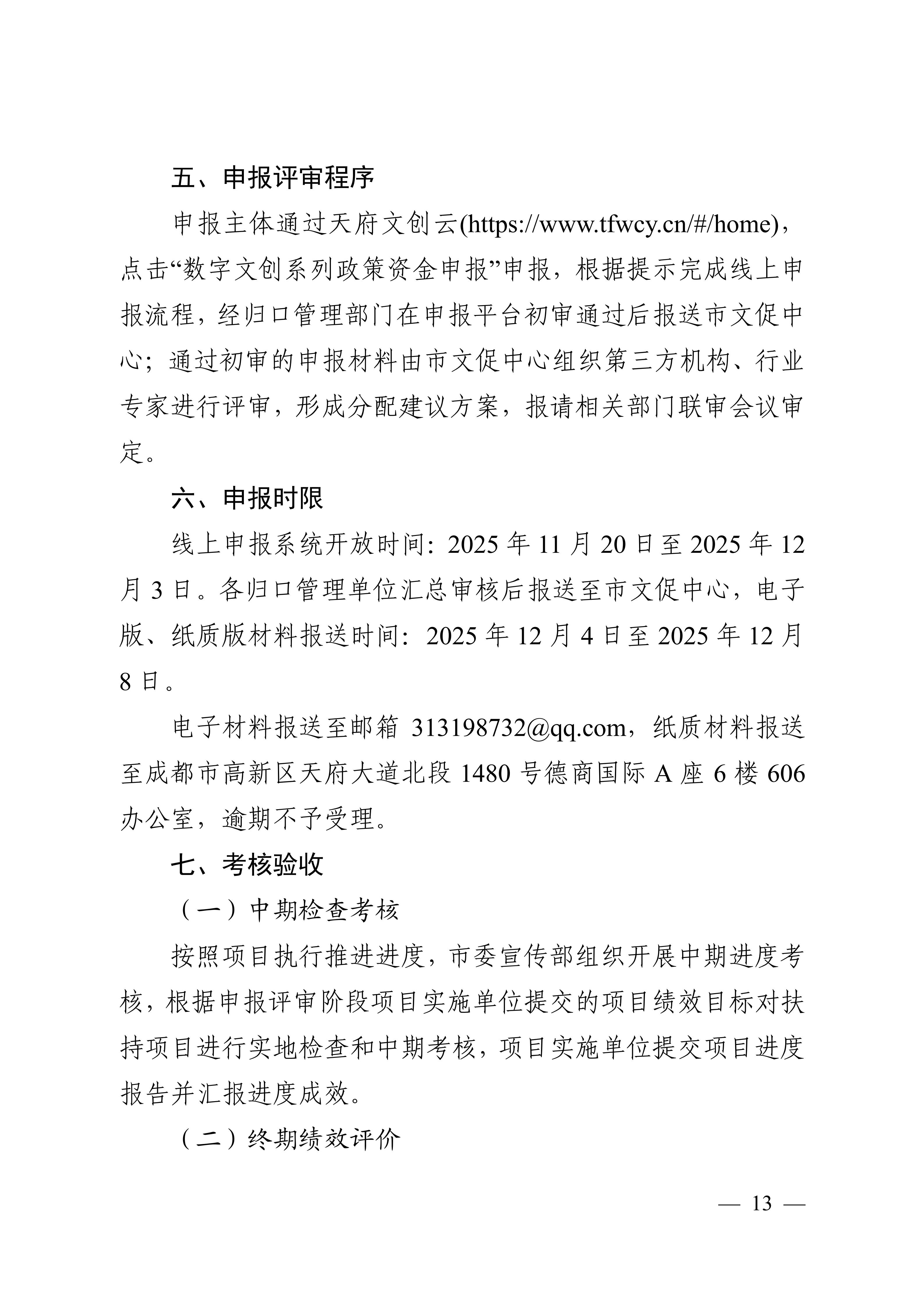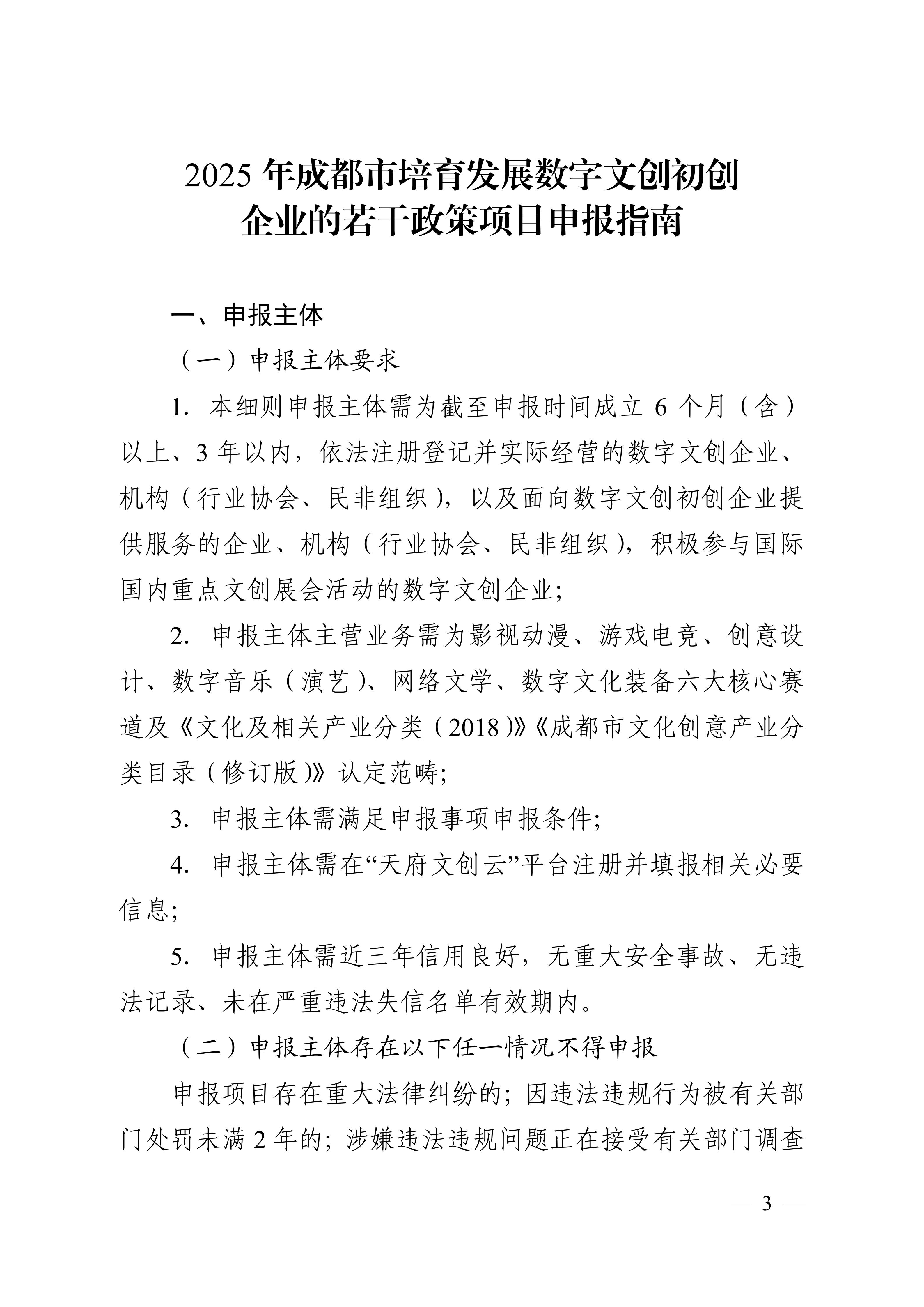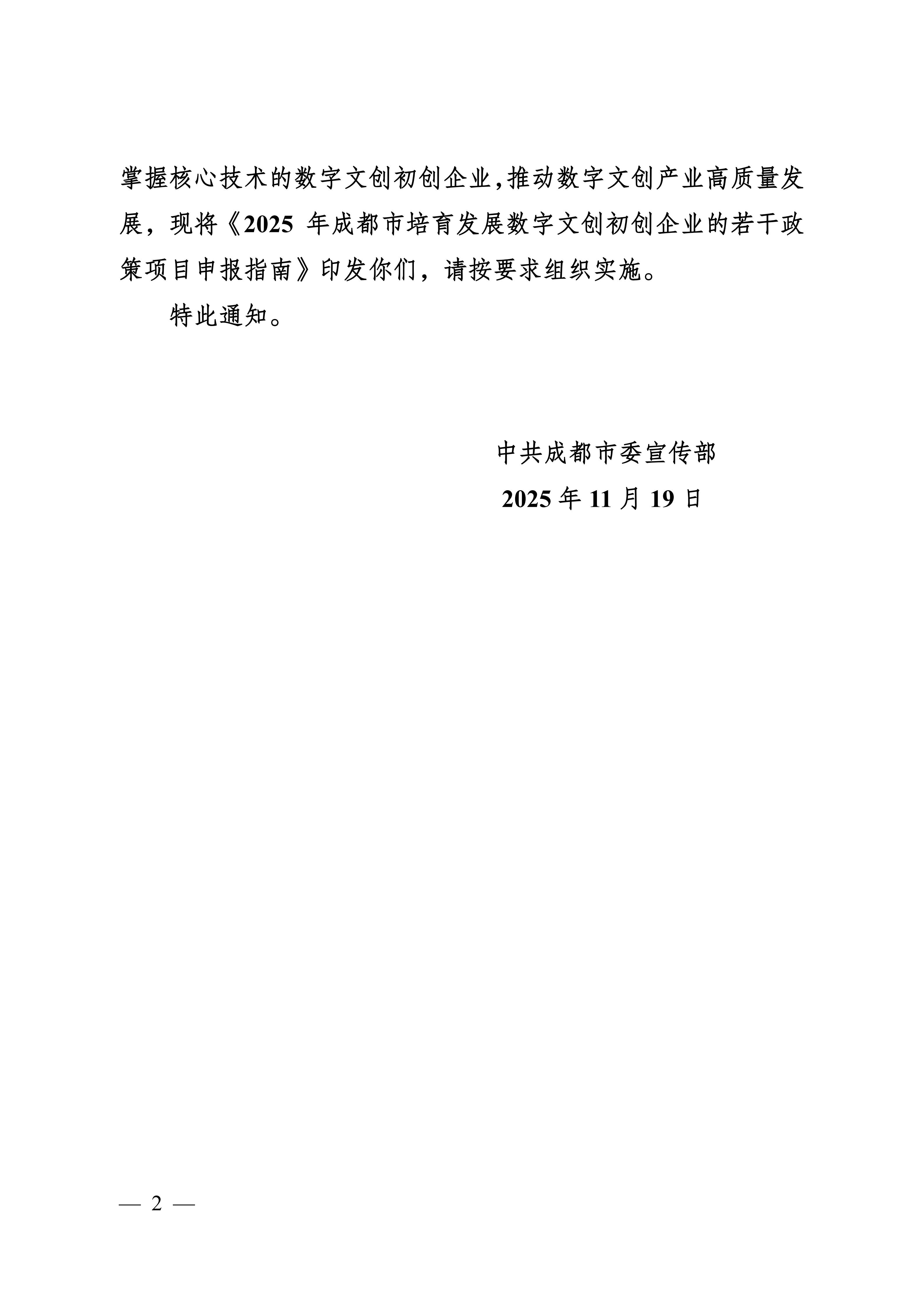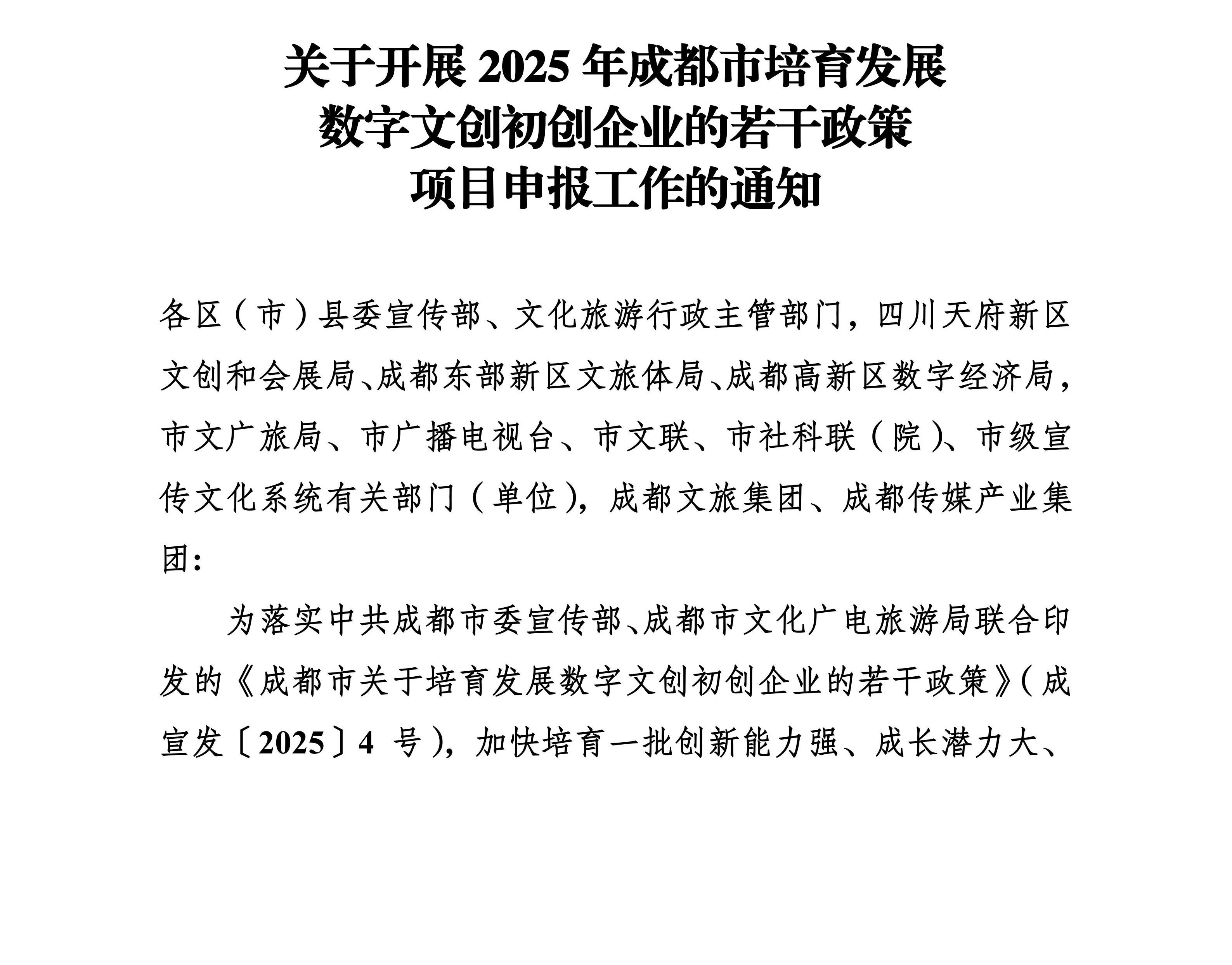 关于开展 2025 年成都市培育发展数字文创初创企业的若干政策项目申报工作的通知